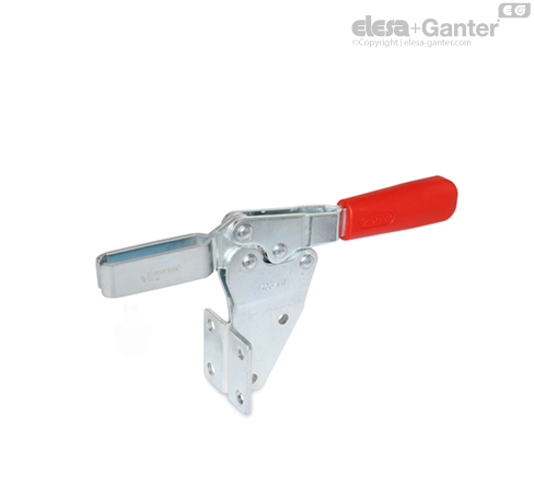 Горизонтальные шарнирные зажимы GN 820 работают по правилу изгиба: рычаг и прижимная планка перемещаются в противоположных направлениях.