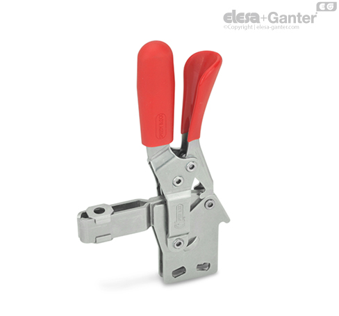 Вертикальные прижимы GN 810.4 фиксируются в обоих конечных положениях. В зажатом положении таким образом предотвращается непроизвольное открытие или открытие вследствие вибраций; также в отрытом положении это предотвращает самозакрытие прижима, вызванное, например, удлиненным прихватом. Расфиксация производится одной рукой, позволяя затем открыть/закрыть прижим.