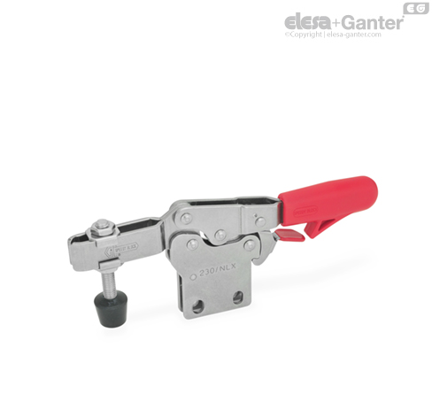 Шарнирно-рычажные фиксаторы в швеллерном варианте исполнения с двумя фланцевыми шайбами (тип NL) могут при необходимости дополнительно оснащаться специальным нажимным винтом. Помимо этого, в комплектацию типа NLС также входит нажимной винт с неопреновым наконечником.