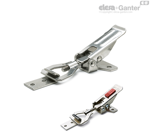 - TLFS: Натяжные замки с крюком и предохранительным стопором. Кнопка из технополимера красного цвета RAL 3000.