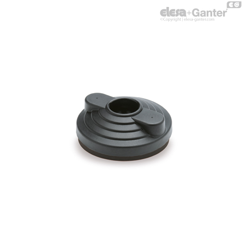 The particular assembling system of the no-slip disk to the base assures a perfect anchoring, preventing separation even in case of impact during transport or of adhesion (sticking) to the floor (see No-slip Disks on page -).